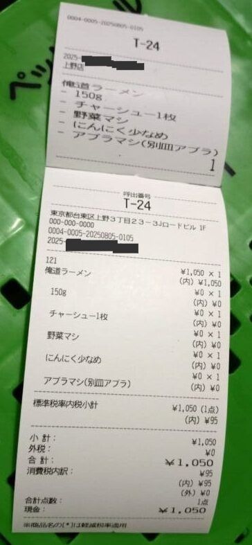 しかしこのなんと「俺の生きる道 上野店」、歩いてほんのすぐ、徒歩1分くらいのところに、「豚山 上野店」があるのです。ものすごい近くに、同じような二郎系ラーメン店をオープンするなんて、すごい勝負だなぁと思いました。