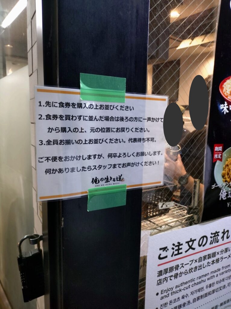 先に券売機で食券を購入し、それから列に並ぶ方式がとられており、行列時はこのルールを守ることが大事です。
