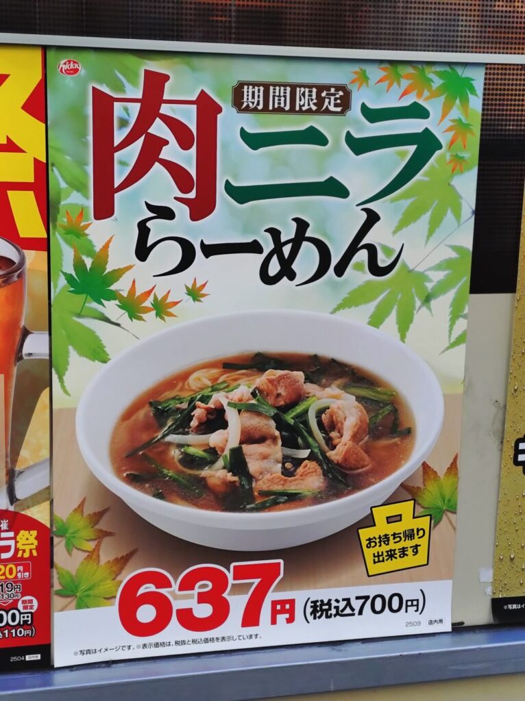 何を食べようか店内を見回していたところ、見つけたメニューが期間限定の「肉ニラらーめん」